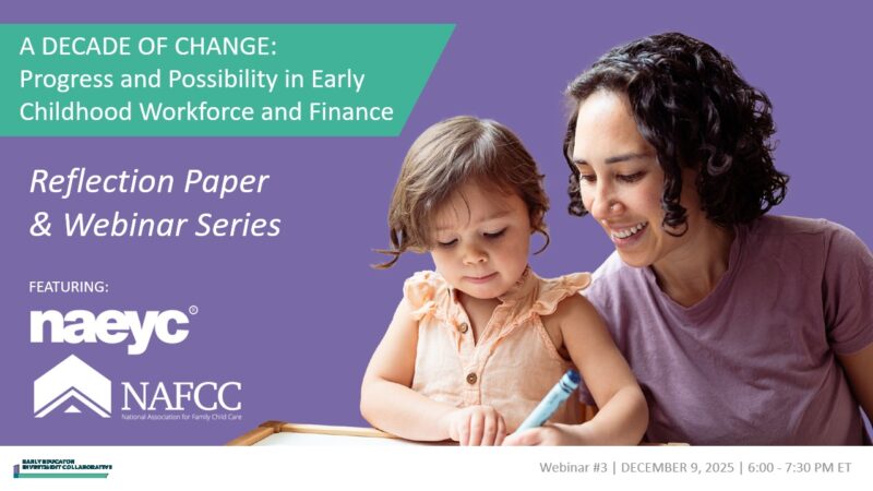 The Early Educator Investment Collaborative’s commitment to dismantling systemic inequities and strengthening educator preparation, compensation, and financing is grounded in two landmark reports: Transforming the Workforce for Children Birth Through Age 8: A Unifying Foundation and Transforming the Financing of Early Care and Education.